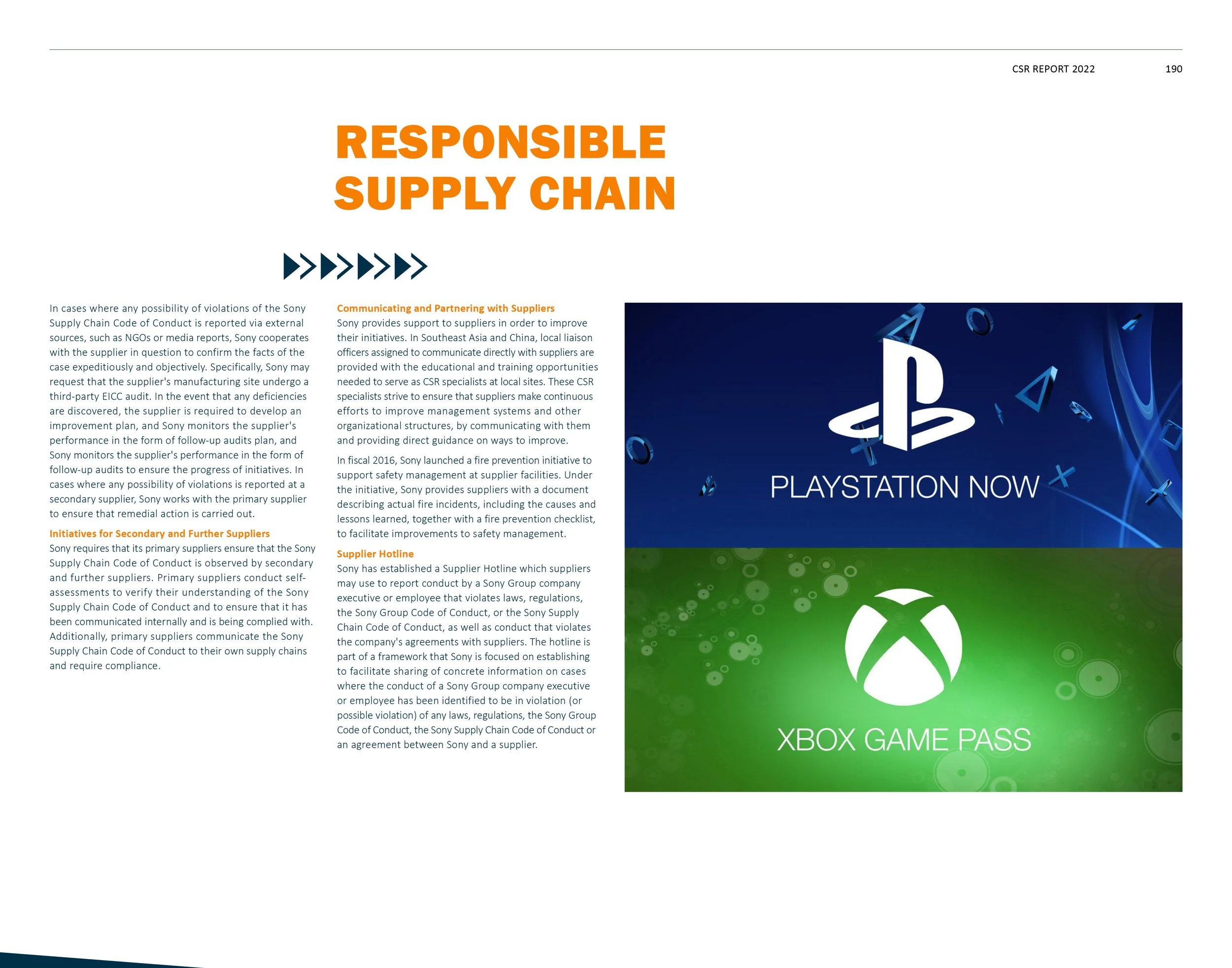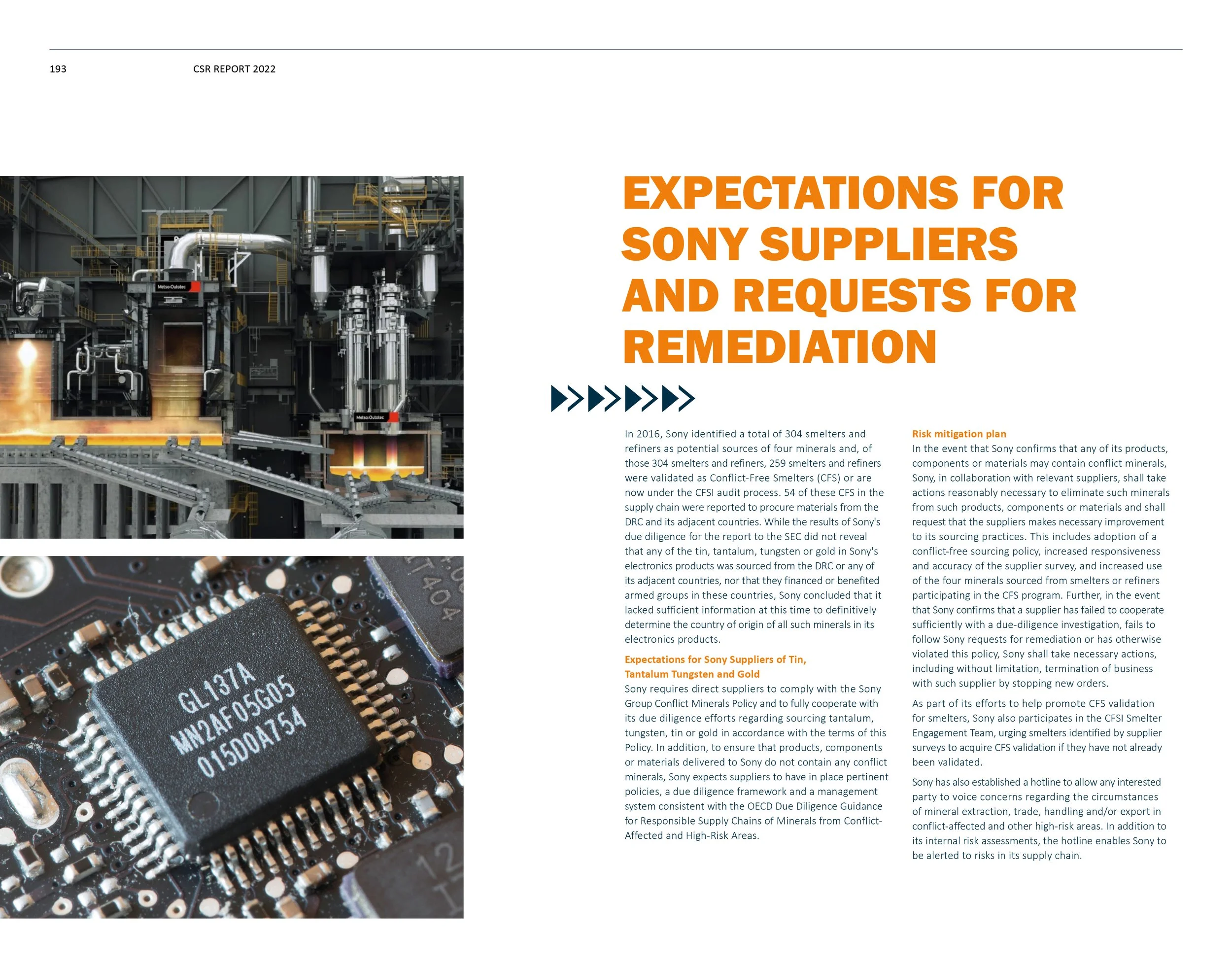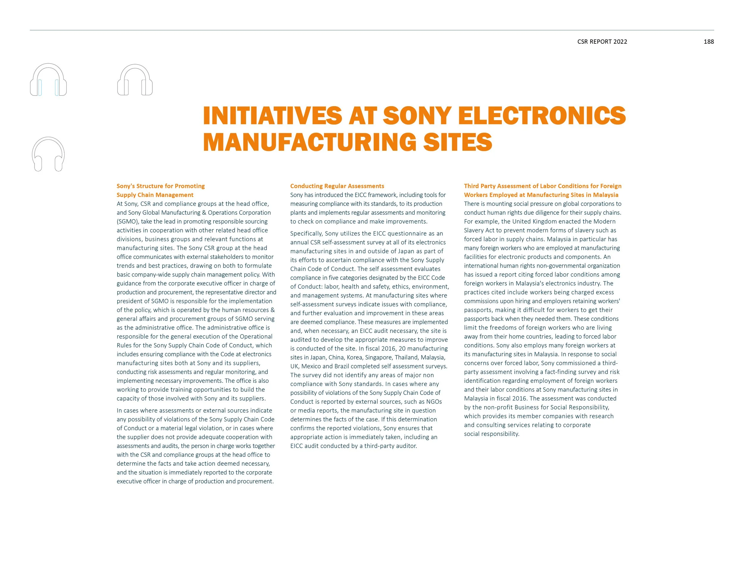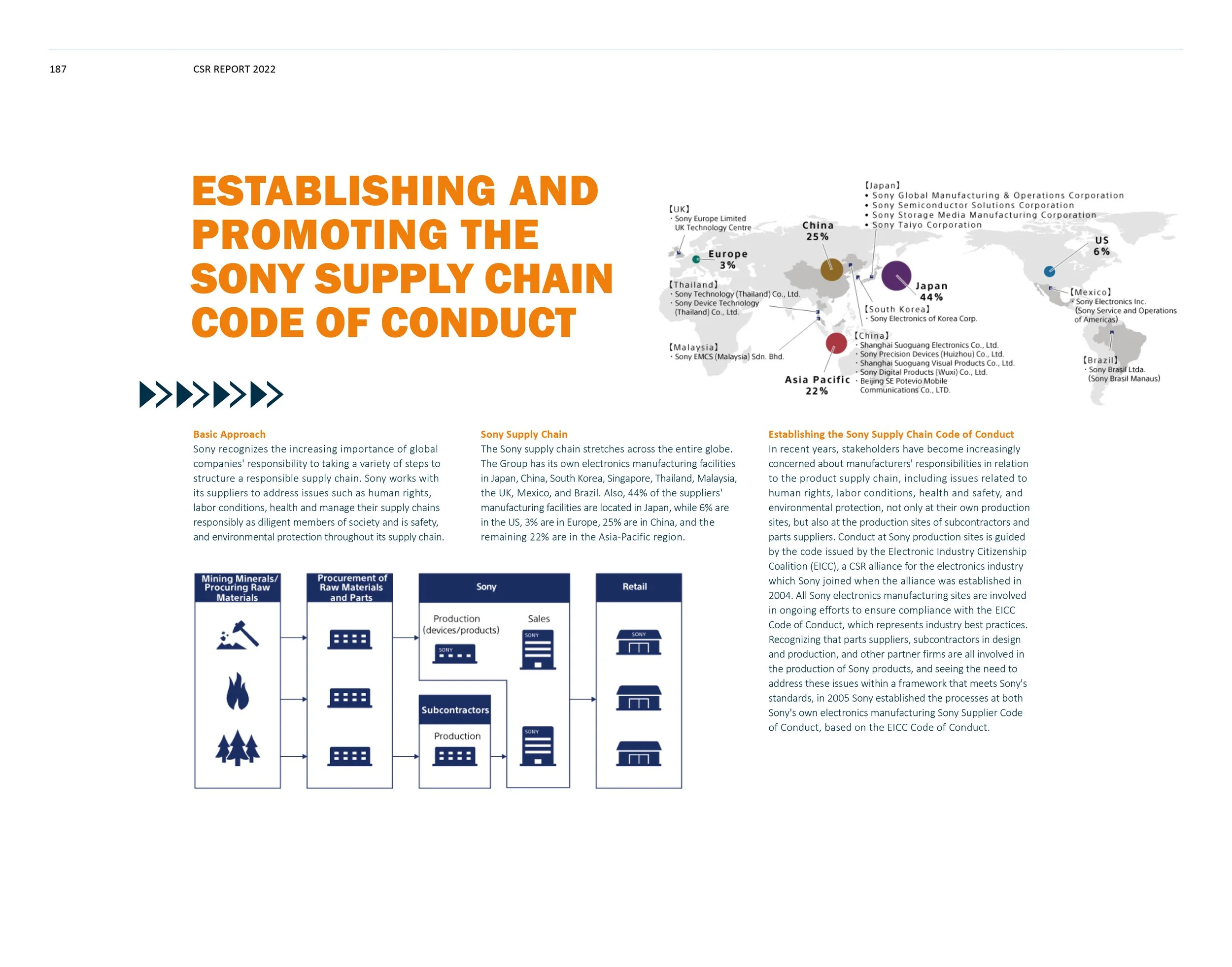 Explores how Sony manages responsible sourcing across its global supply chain, working closely with suppliers and manufacturing partners to address labor conditions, human rights, safety, and environmental standards.