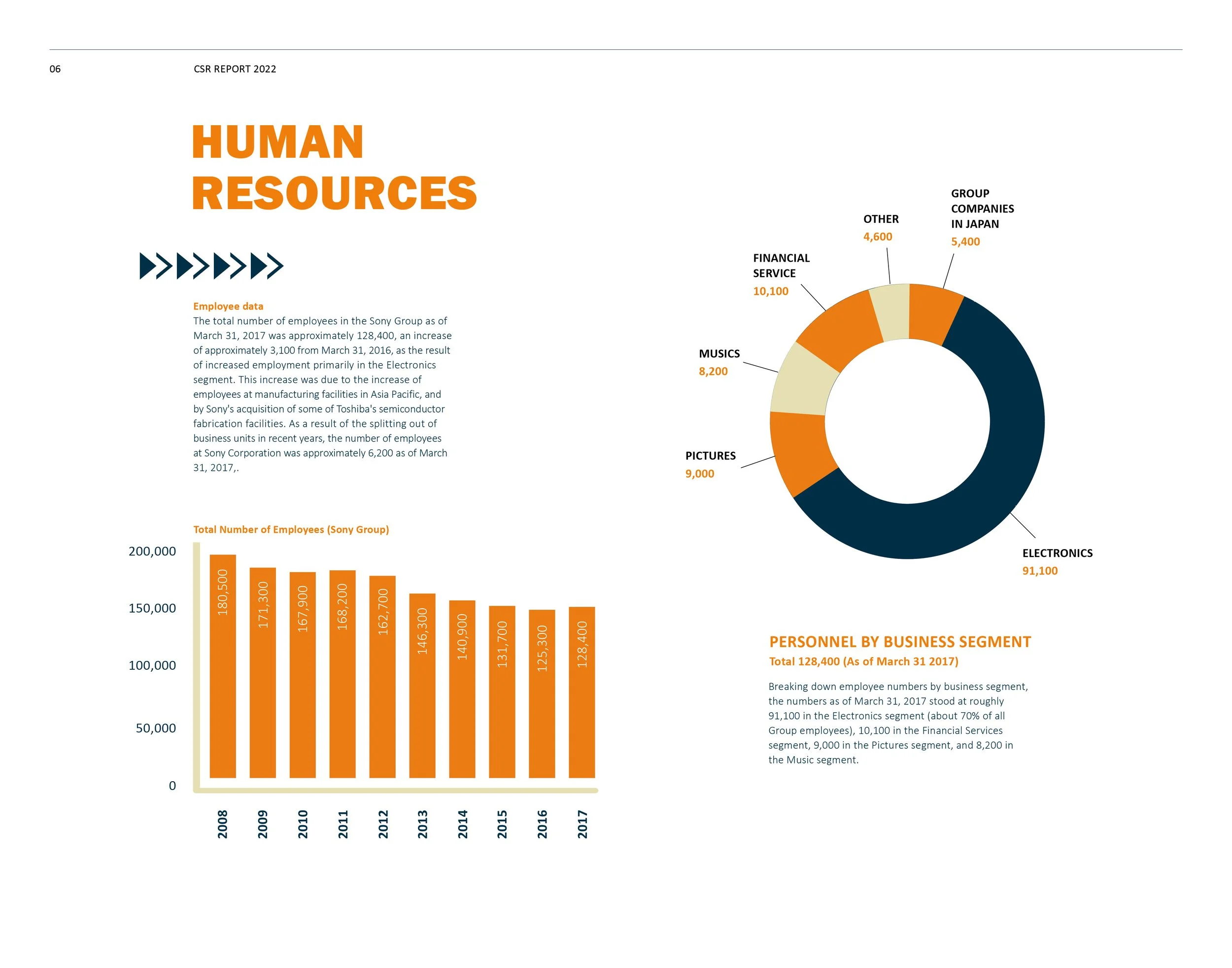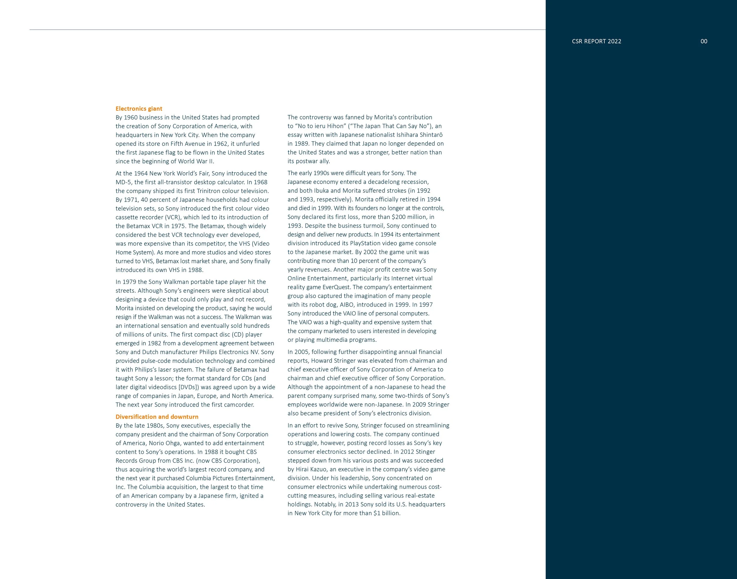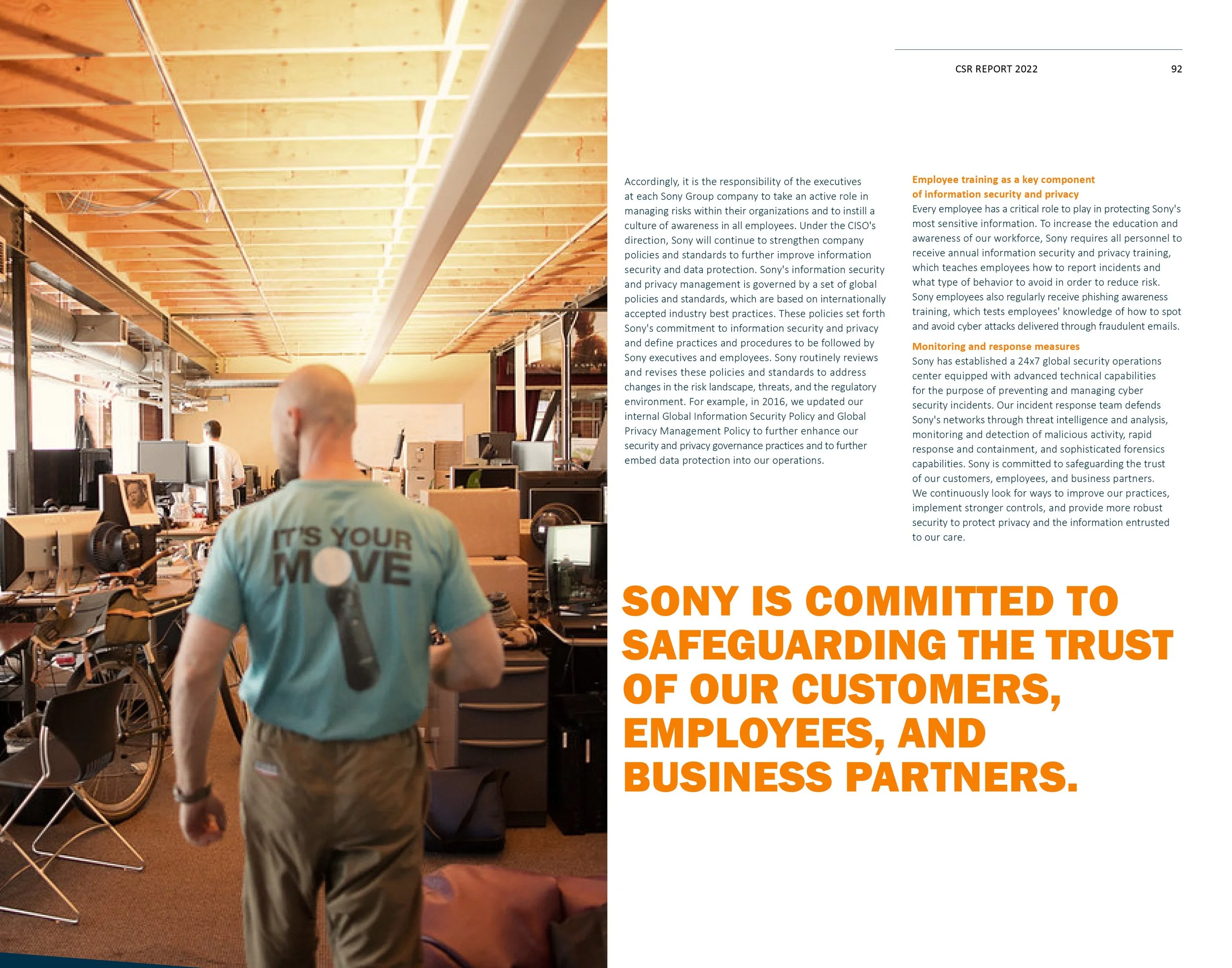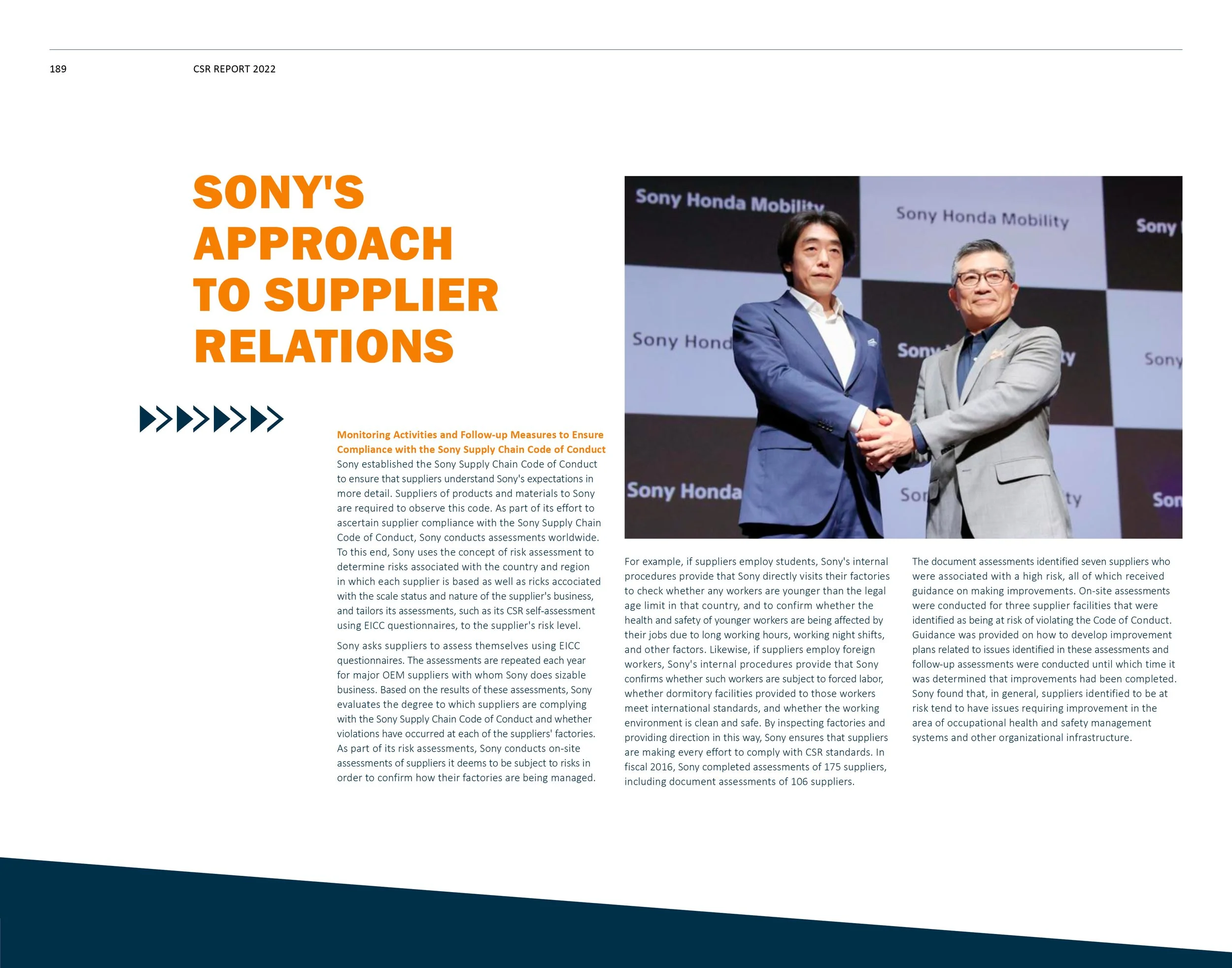 Highlights Sony’s people-first approach, with an emphasis on diversity and inclusion, safe and healthy workplaces, and policies that support sustainable work styles and long-term career development.