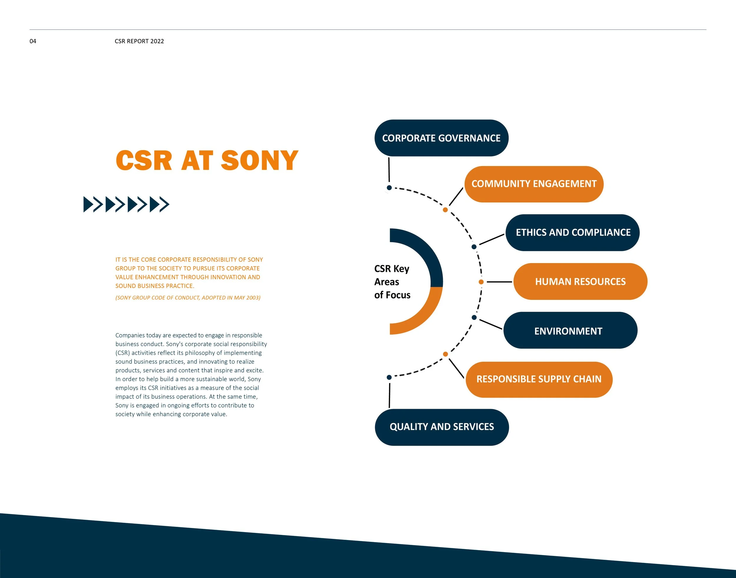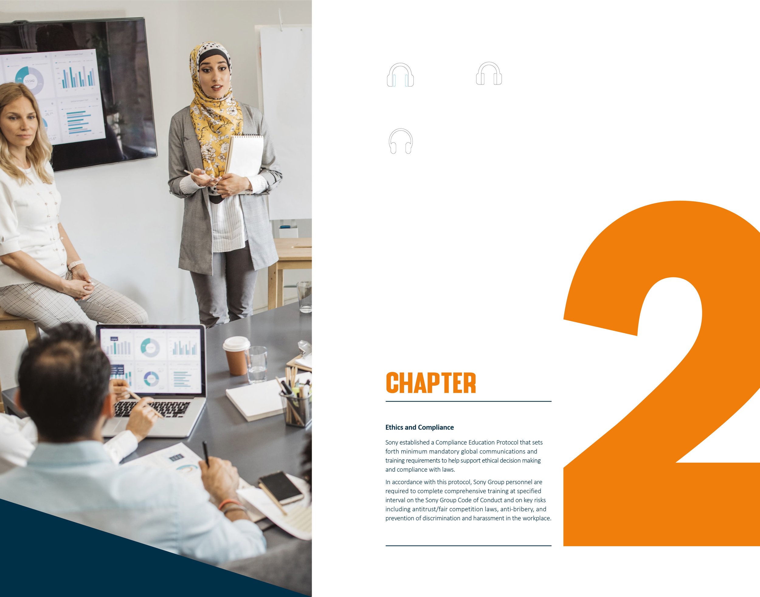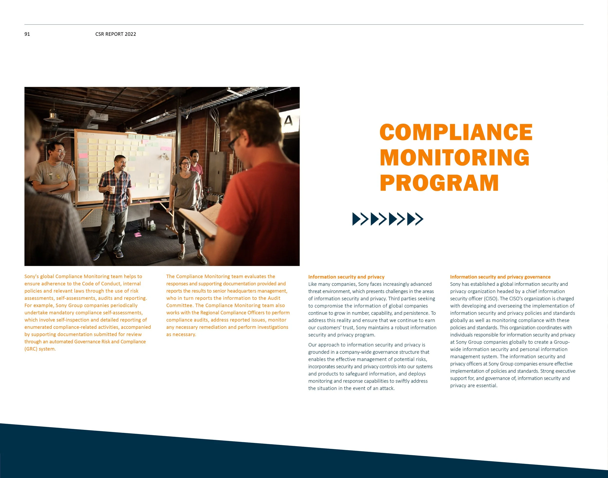 Focuses on Sony’s ethical standards and compliance framework, including mandatory training, fair competition, and anti-bribery guidelines, and company-wide monitoring through regular assessments and audits.