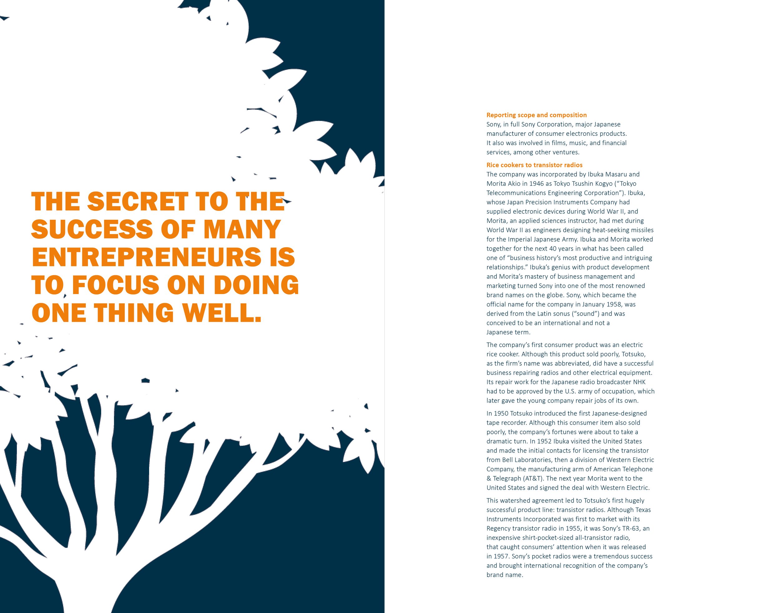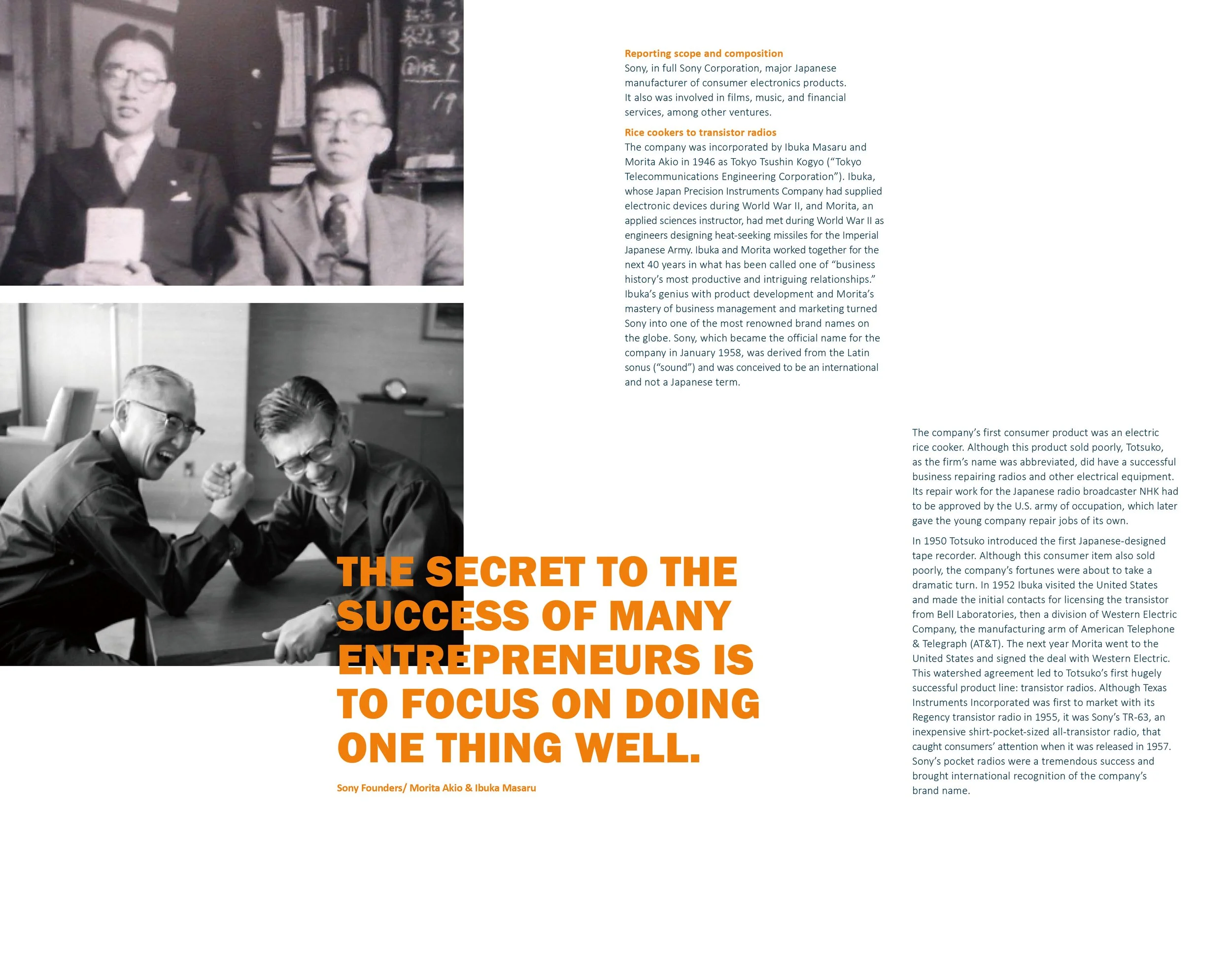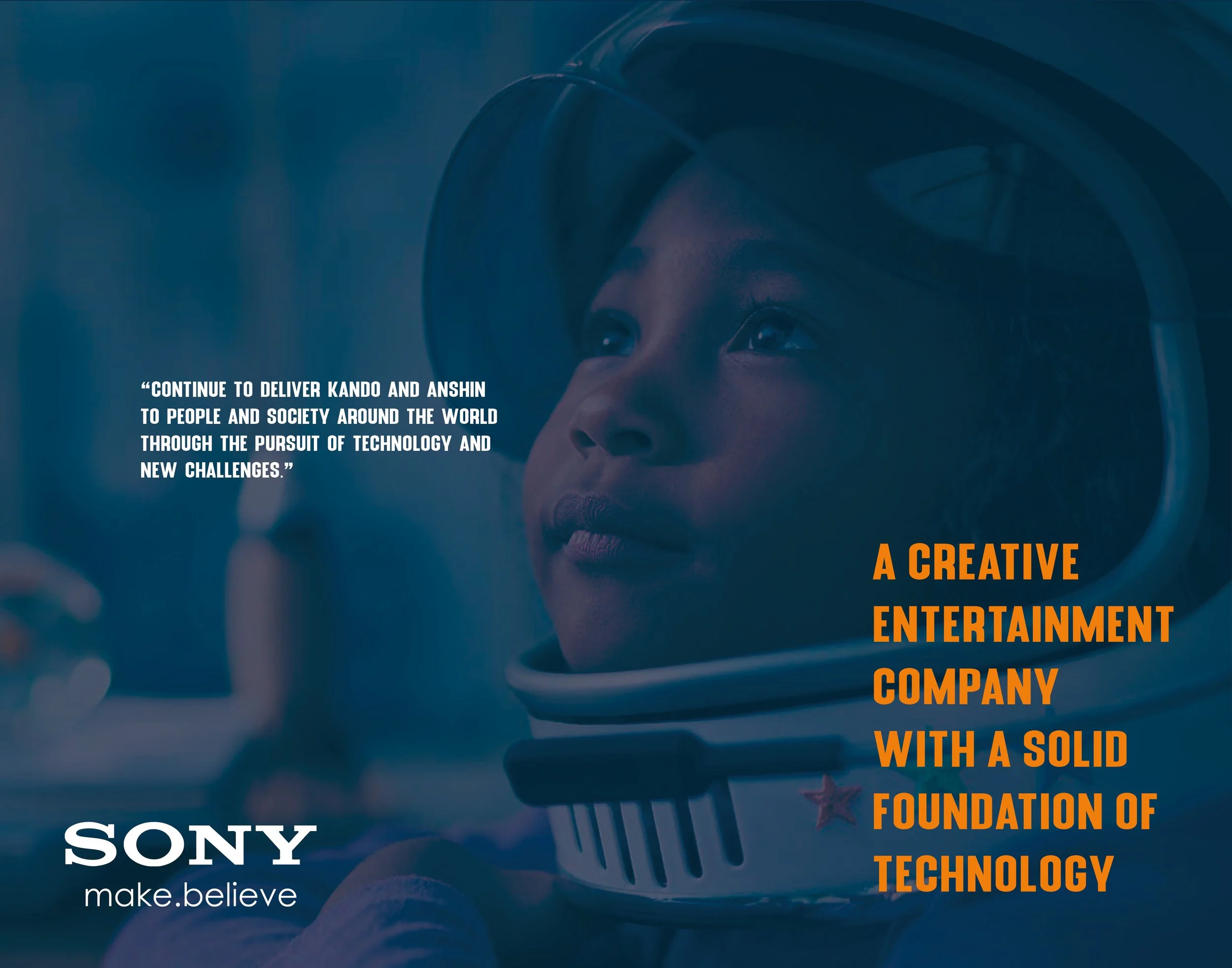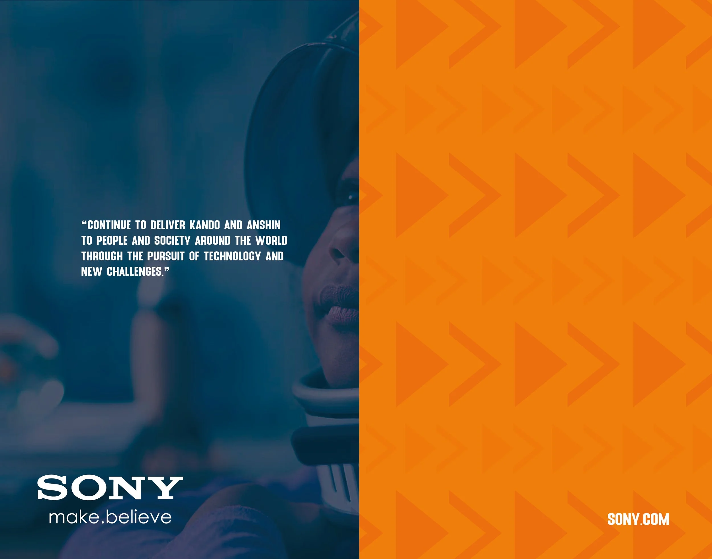 The back cover introduces a young astronaut, symbolizing Sony as a vessel for imagination and innovation, a company that carries dreams forward and represents an aspirational workplace for future generations.