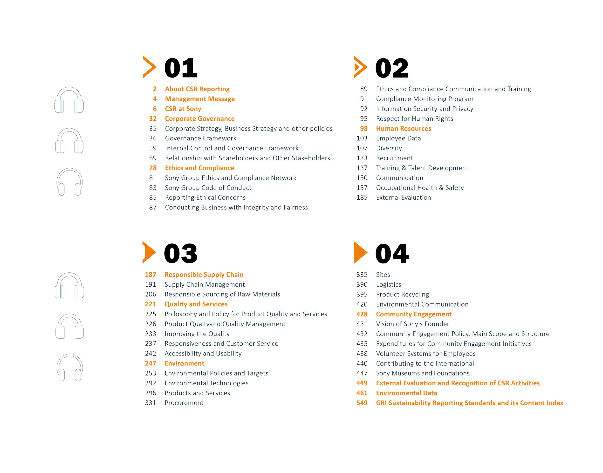 Based on Sony’s CSR framework, the project reorganizes complex content, including governance, human rights, supply chain responsibility, environmental initiatives, and community engagement, into a clearer, more structured visual system.