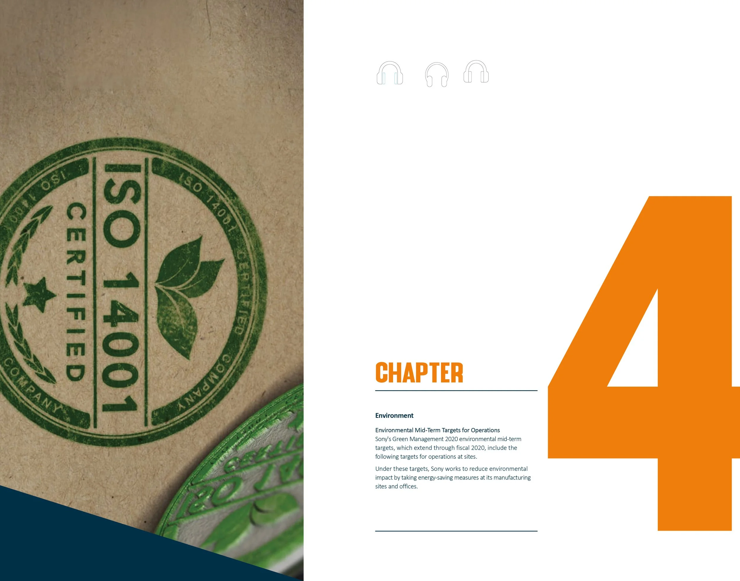 Presents Sony’s environmental goals and initiatives, focusing on reducing environmental impact through energy efficiency, emissions reduction, and long-term sustainability strategies.