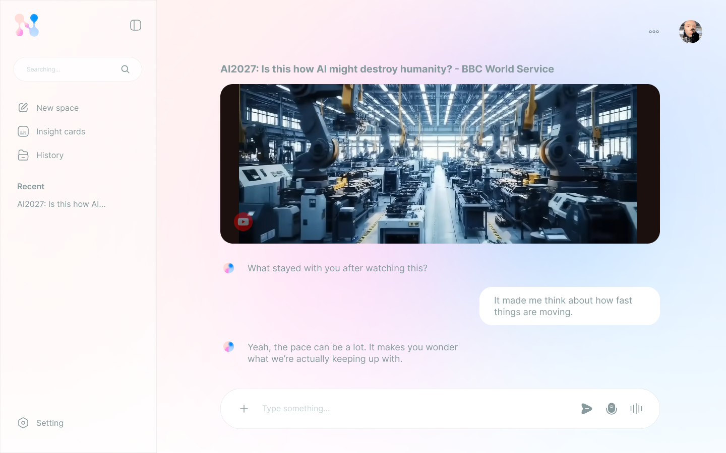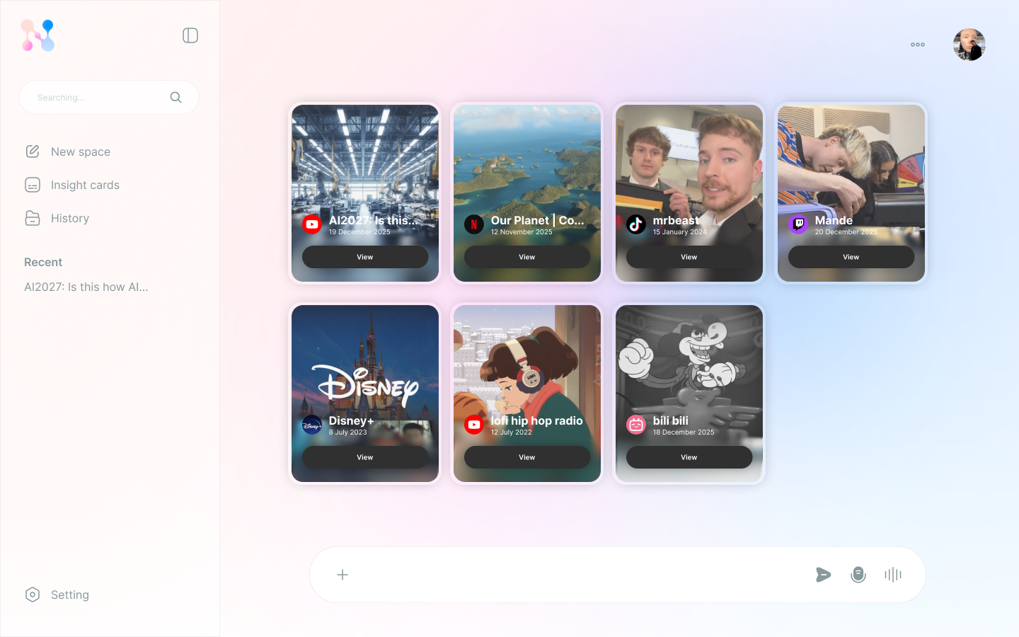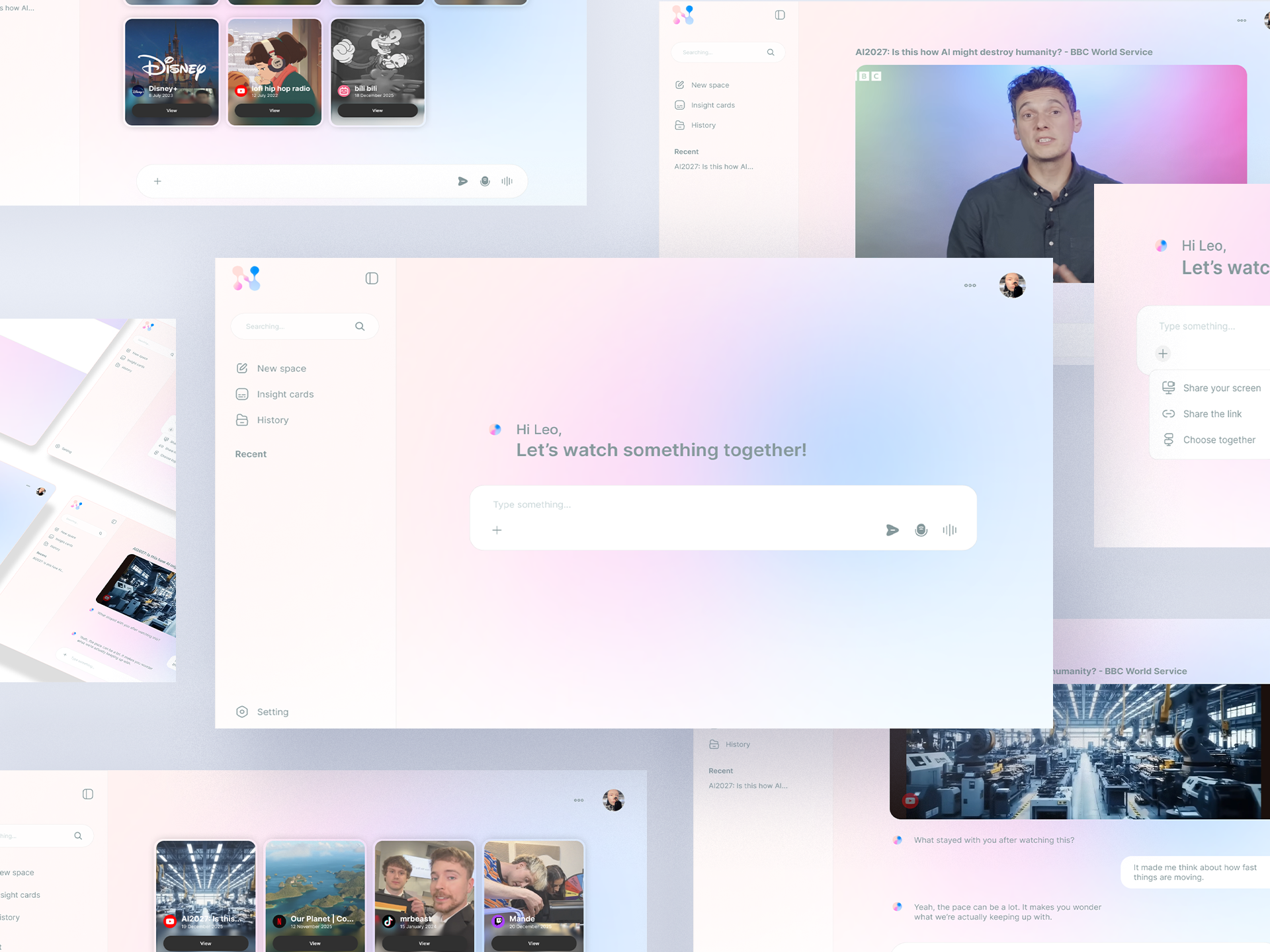 Insight Cards capture meaningful moments during or after watching content. Instead of disappearing into a feed, key reactions, thoughts, or emotional highlights are distilled into simple cards that users can revisit later.
