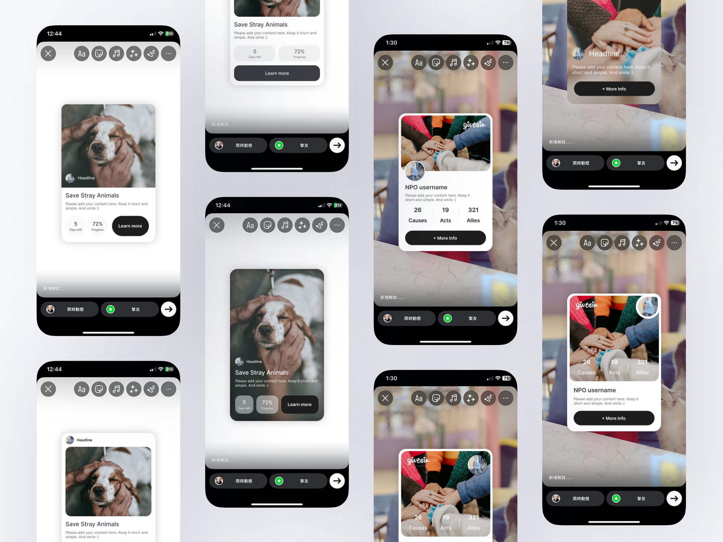 To maximize the reach of every donation, I designed Social Insight Cards, dynamic, shareable assets optimized for Instagram Stories.