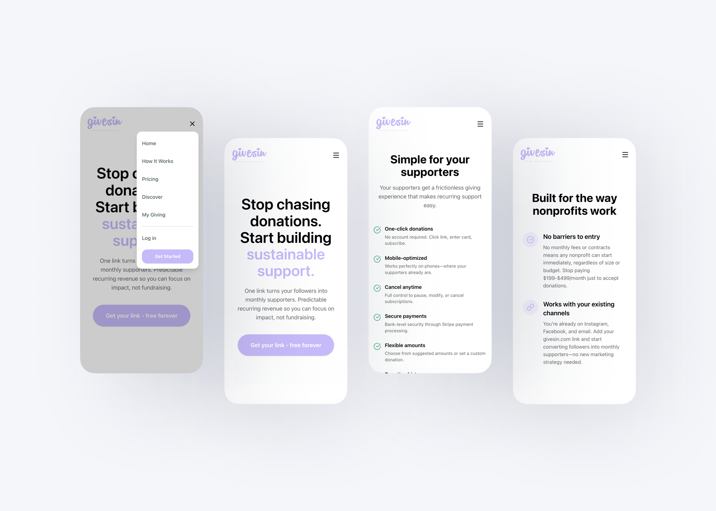 After establishing Givesin's core strategy of solving donation pain points through "subscription-based links," our primary mission was to materialize the abstract concept of a "low-friction experience."